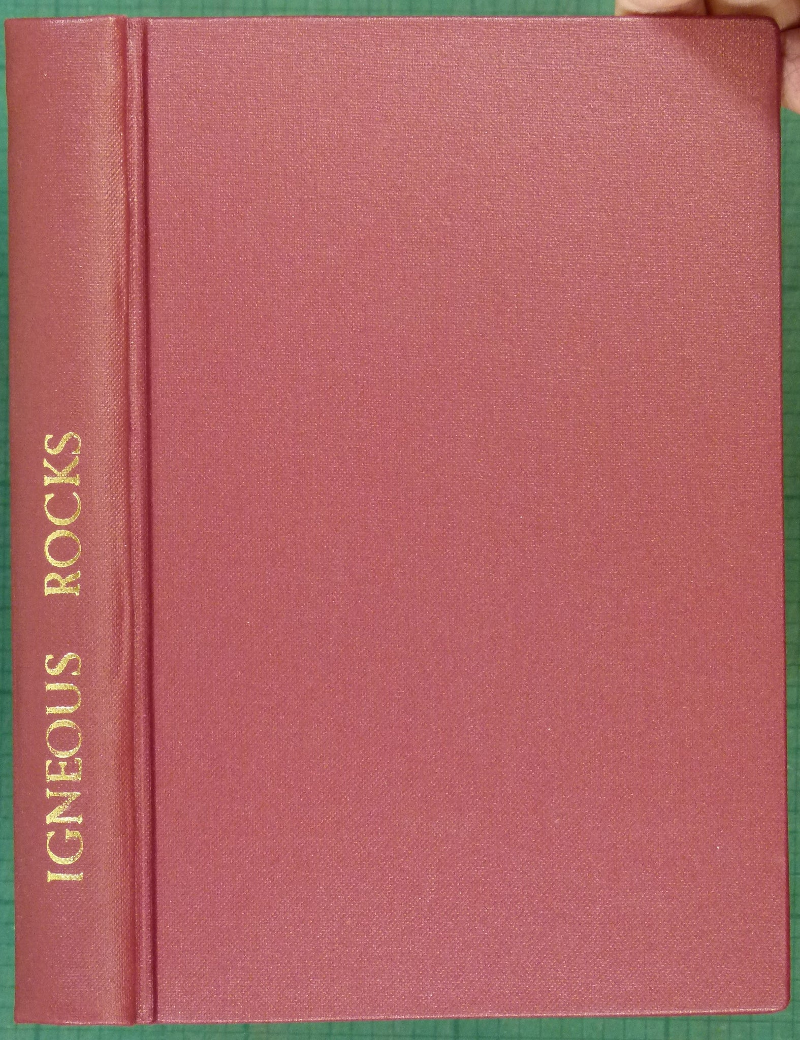 Bowen, N.L (1956). The Evolution of the Igneous Rocks. New York: Dover, facsimile of 1st edition 1928. xii + 334pp. Modern rebound hardback, maroon cloth-covered boards with gilt lettering to spine. No wear. Owner name on half-title. Text age-toned, clean, unmarked. In very good to fine condition.