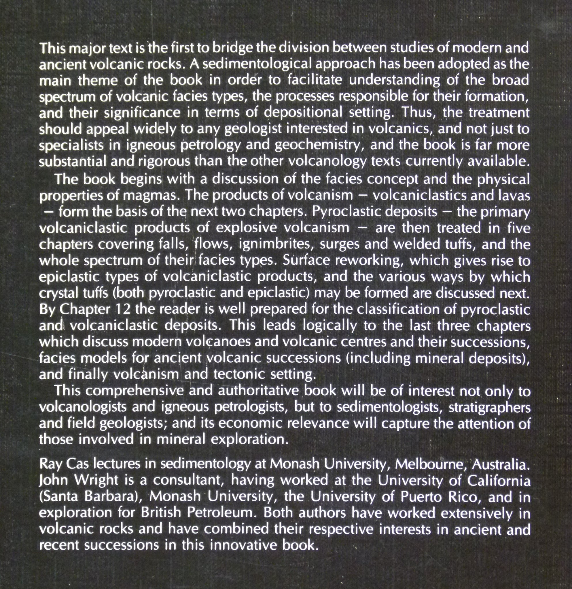 Cas, R.A.F. and Wright, J.V. (1987). Volcanic Successions; Modern and Ancient; A Geological Approach to Processes, Products and Successions. London: Allen and Unwin, 1st edition, xviii + 528 pp. Paperback, slight shelf wear, corners bumped. Text clean and unmarked. In good to very good condition.