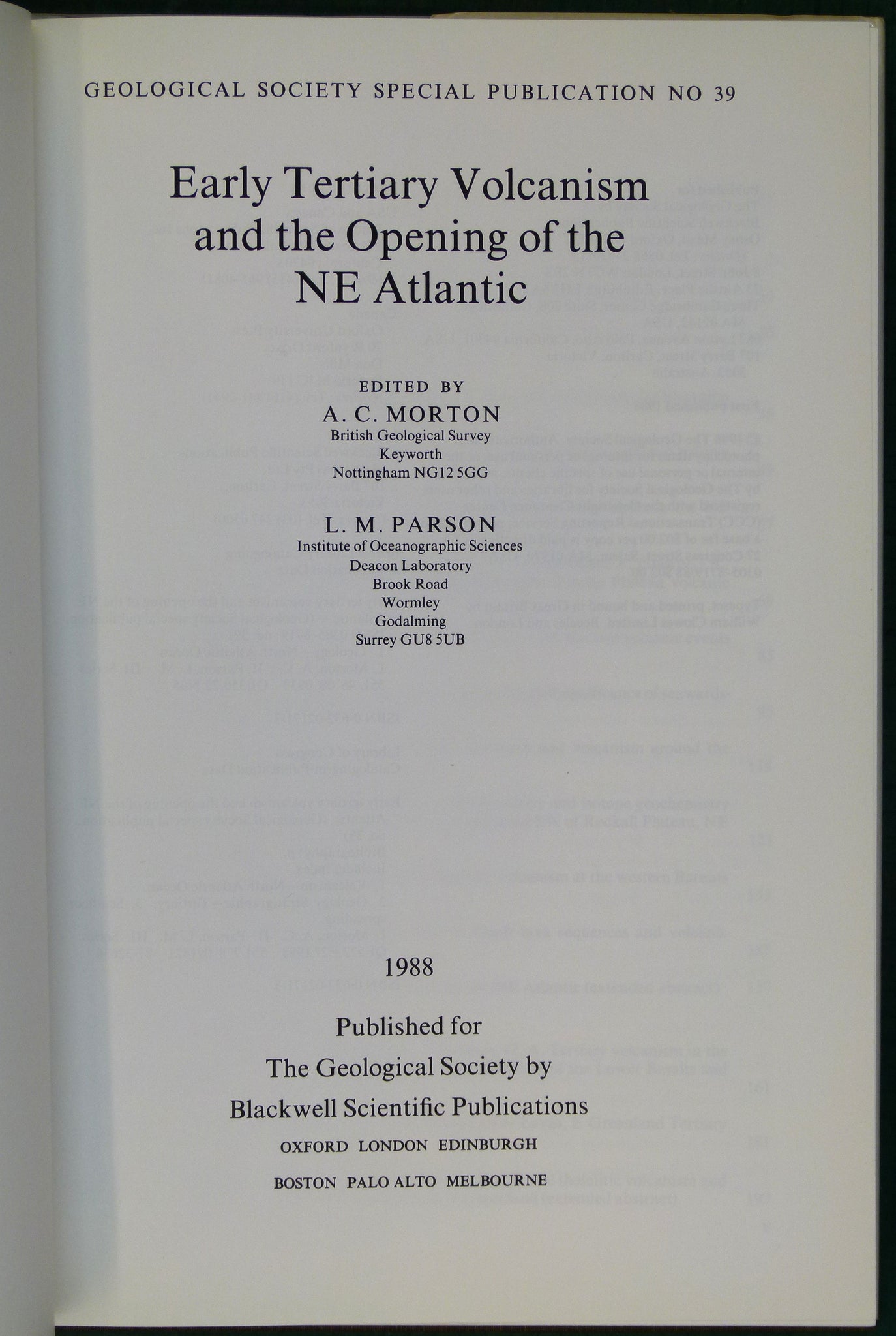 Morton, A.C. and Parson, L.M. (1988). Early Tertiary Volcanism and the Opening of the NE Atlantic, Geological Society Special Publication No.39.