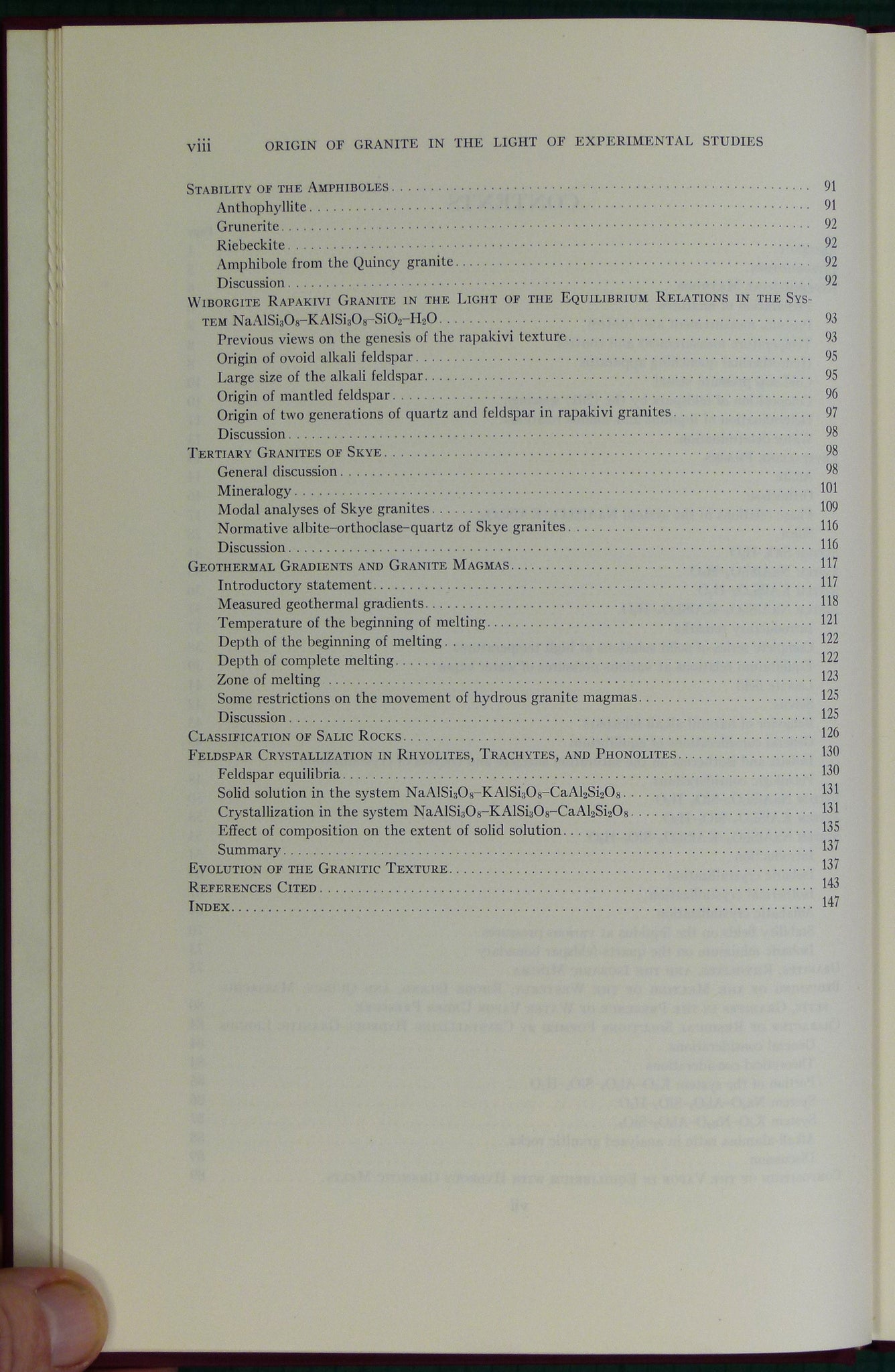 Tuttle, O.F. and Bowen, N.L.. (1958). Origin of Granite in the Light of Experimental Studies in the System NaAlSiO3-KAlSi3O3-SiO2-H2O. GSA Memoir 74