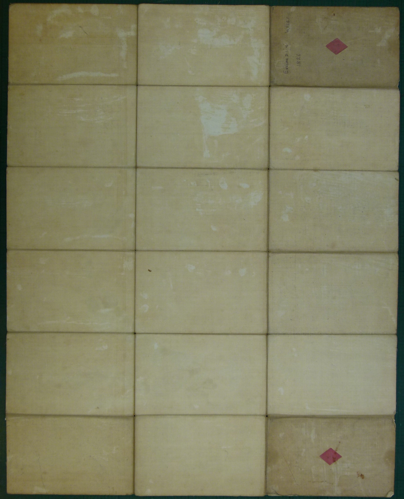 Gardner, James (1826), Geological Map of England and Wales, Reduced by Permission from the Map in 6 Sheets Published by the Geological Society. London: James Gardner. 1st edition. Scale 1:792,000 approx. (1 inch = 12.5 miles). Hand coloured engraving, 69 x 54cm, dissected and mounted on linen folding to 18 x 10cm between grey card covers and fitting green cloth-covered slip case with C. Smith label. The map has a faint plate mark and is age-toned, the colours are clear and bright. The linen is intact, The slip case has bumped and frayed base corners but, otherwise, surprisingly little wear. The label has the ‘Geological Map of’ pasted over the standard label. The name Ingleborough in manuscript is written on the slip case label and on the map front cover. Case and map in good to very good condition.