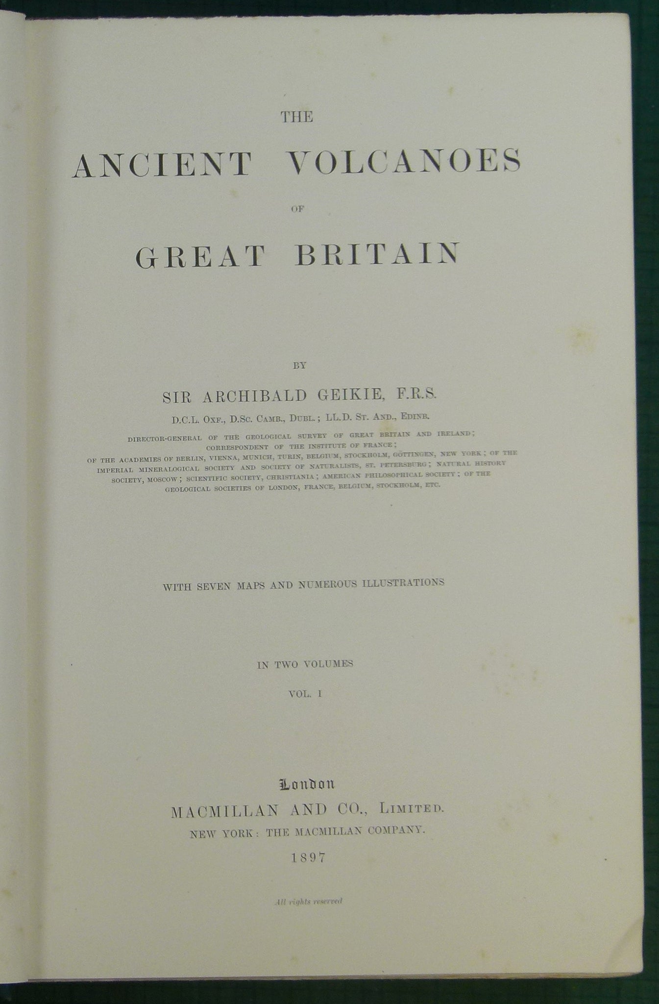 Geikie, A. (1897). The Ancient Volcanoes of Great Britain, London: MacMillan, 2 vols. V.1, xiv + 477 pp. V2. xv + 492pp. Hardback