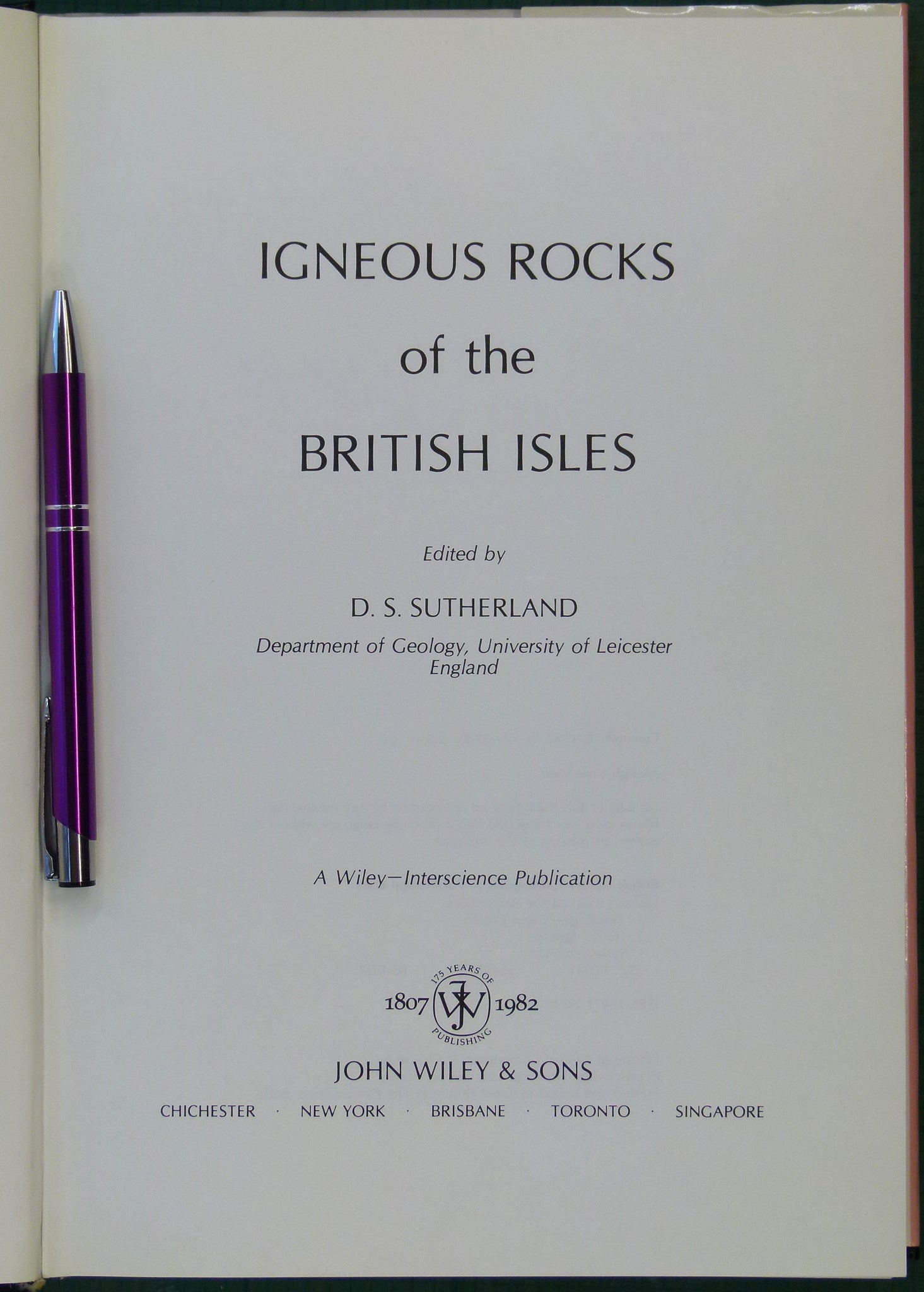 Sutherland, D.S. (ed) (1982). Igneous Rocks of the British Isles. London: Wiley, 1st edition. xv + 645pp. Hardback,