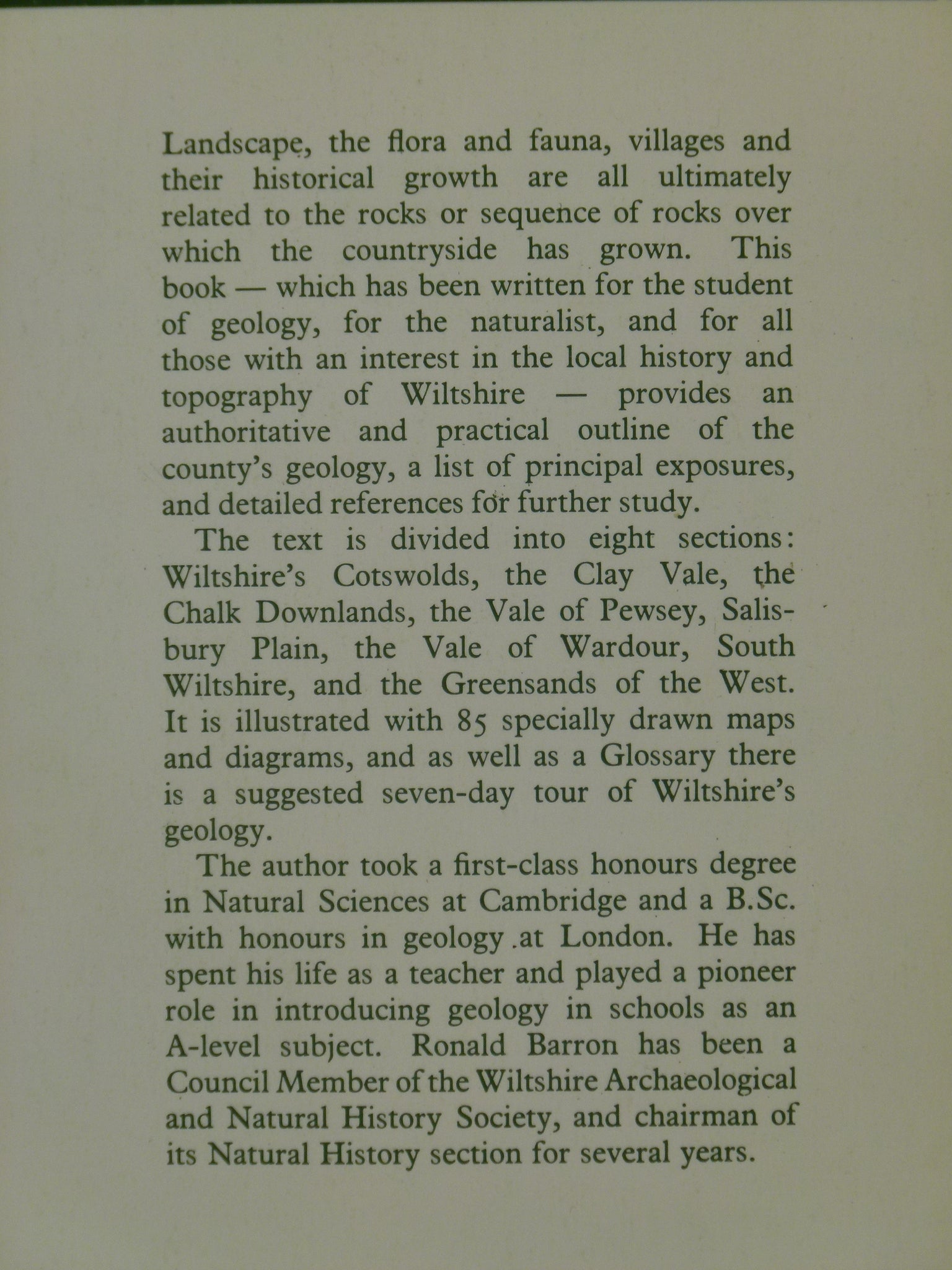 Barron, R.S. (1976). The Geology of Wiltshire; a Field Guide. Bradford-on-Avon: Moonraker Press, 1st edition.