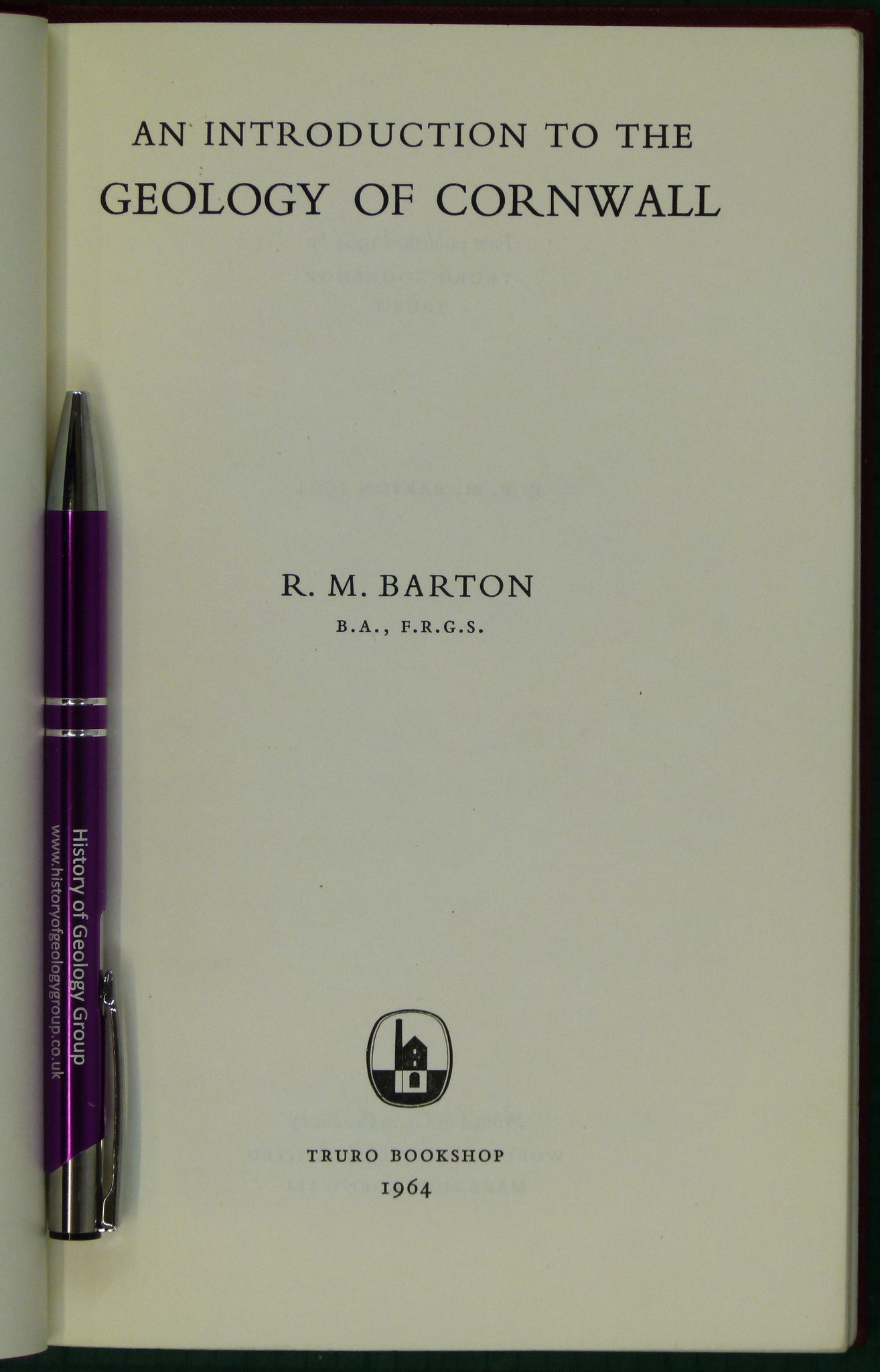 Barton, R.M. (1964). An Introduction to the Geology of Cornwall. Truro: the Truro Bookshop, 1st edition 168 pp. Hardback,