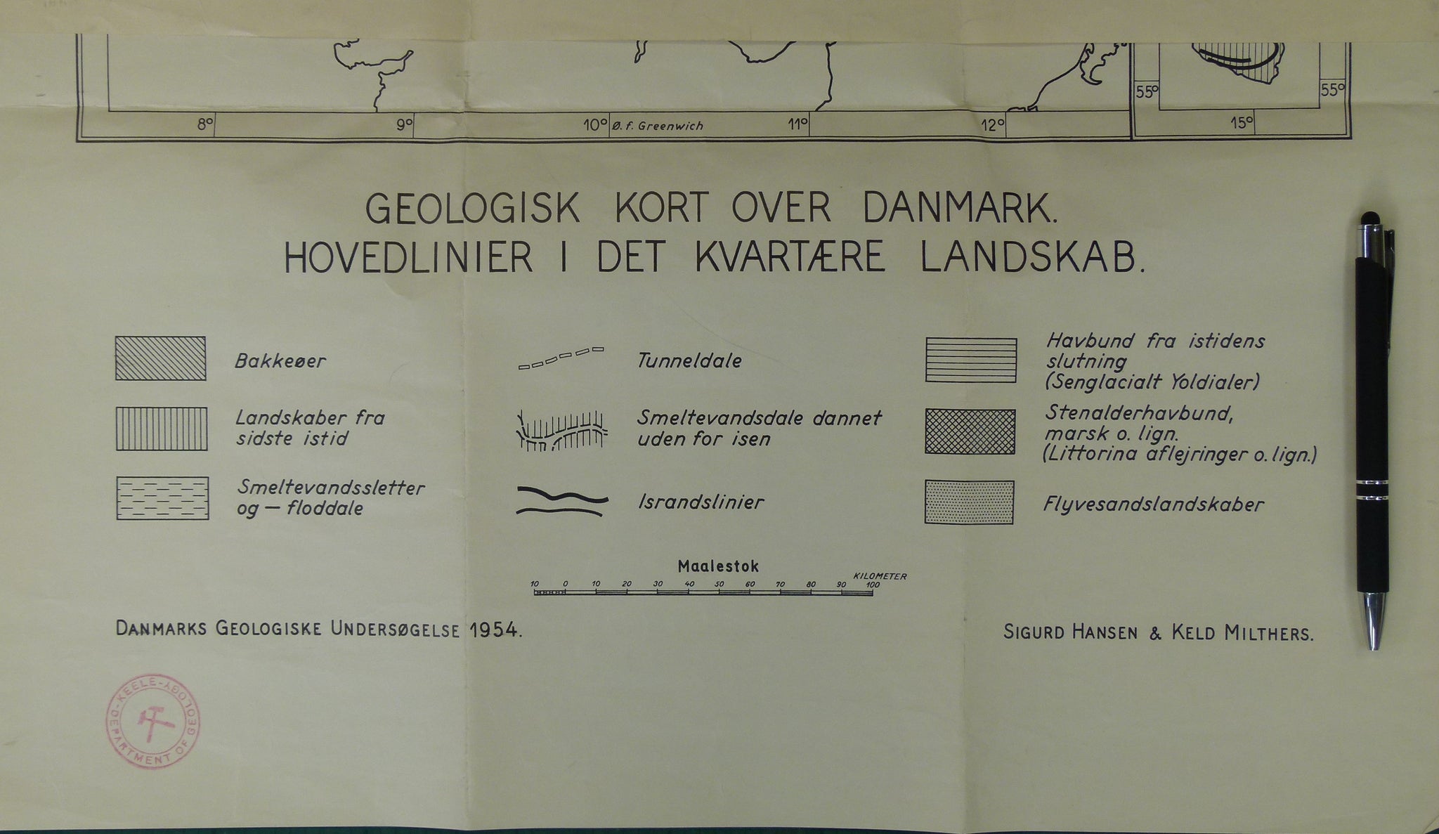 Denmark. Geologisk Kort over Danmark. Hovedlinier I Det Kvartaere Landskab [Main features of the Quaternary landscape] (1954). Geological Survey of Denmark.