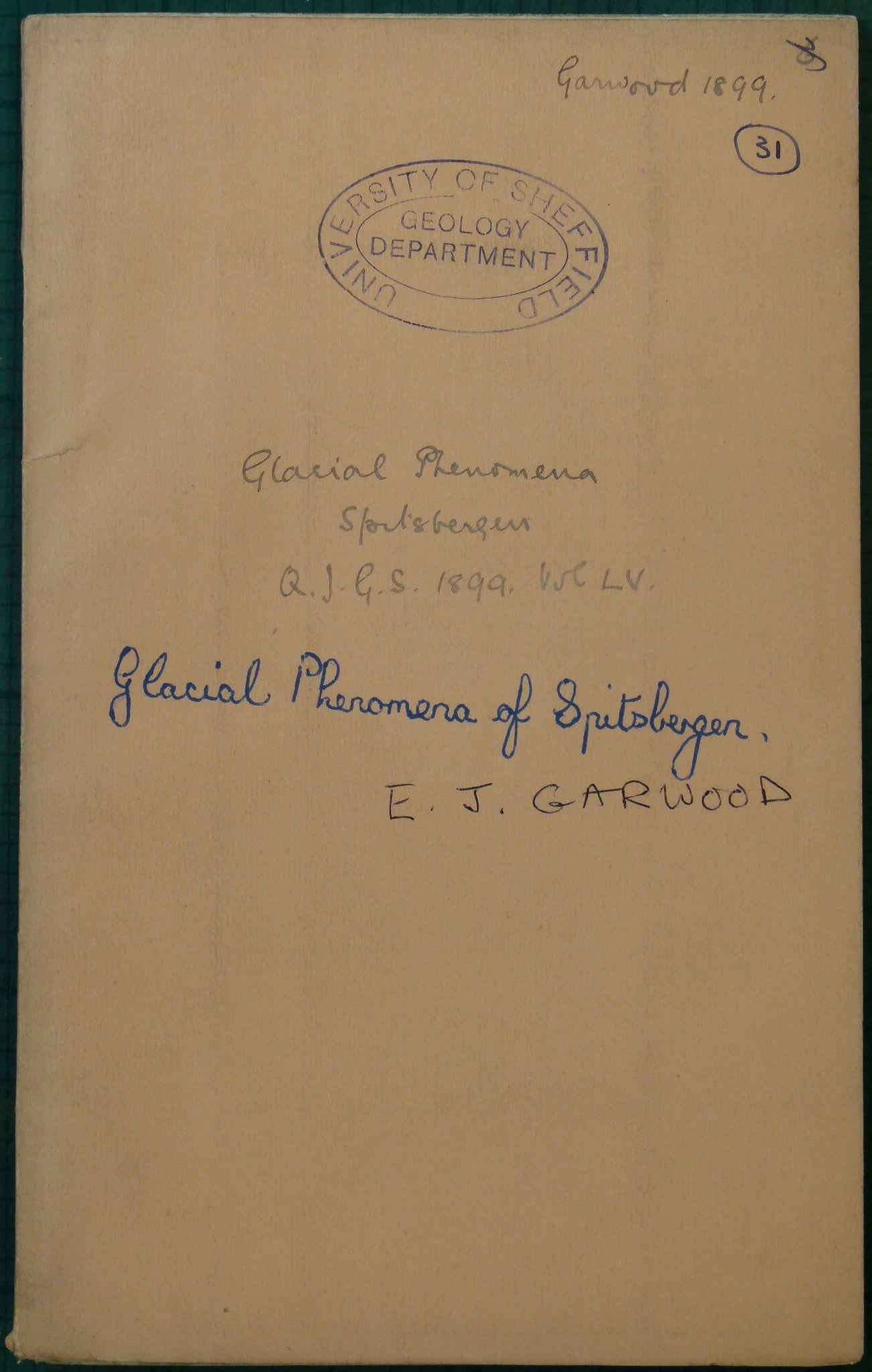 Garwood, E.J. (1899). ‘Additional Notes on the Glacial Phenomena of Spitsbergen’ re-print from the Q