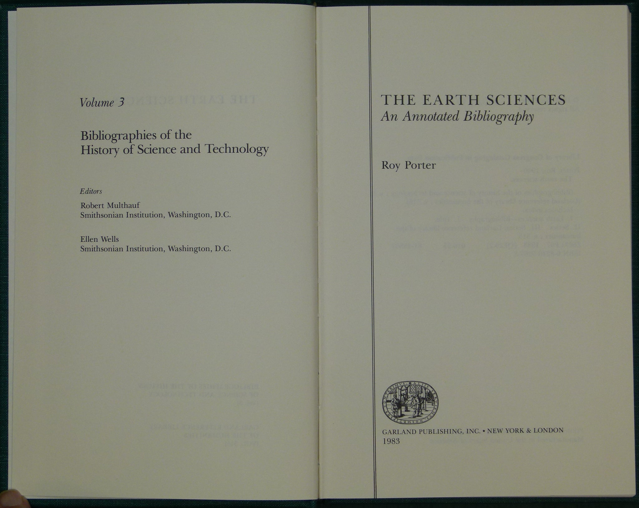 Porter, Roy (1983). The Earth Sciences; an Annotated Bibliography. New York and London: Garland Publishing. 192pp.