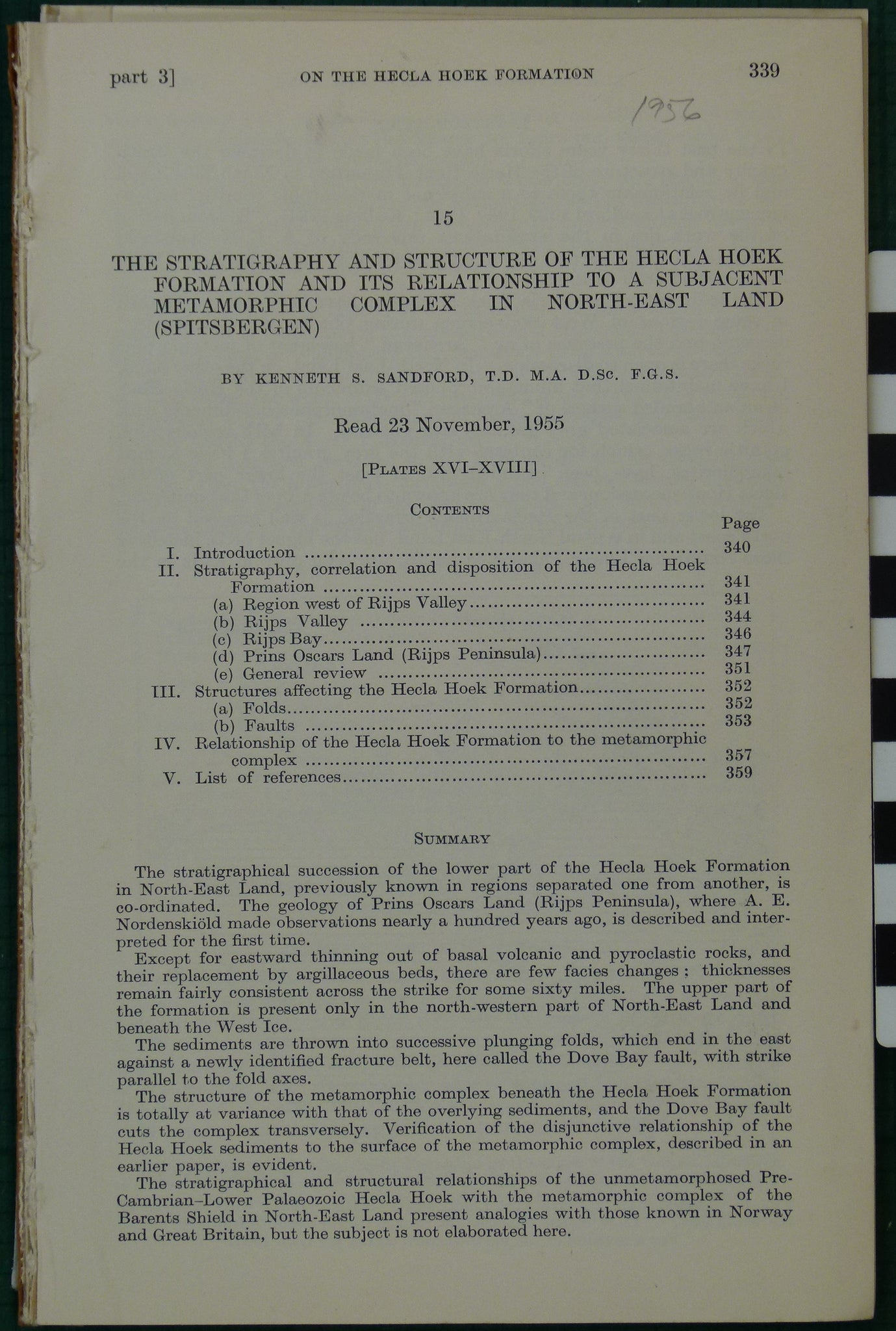 Stanford, K.S. (1955). ‘The Stratigraphy and Structure of the Hecla Hoek Formation in North-East Land (Spitzbergen)’ extract from the QJGS